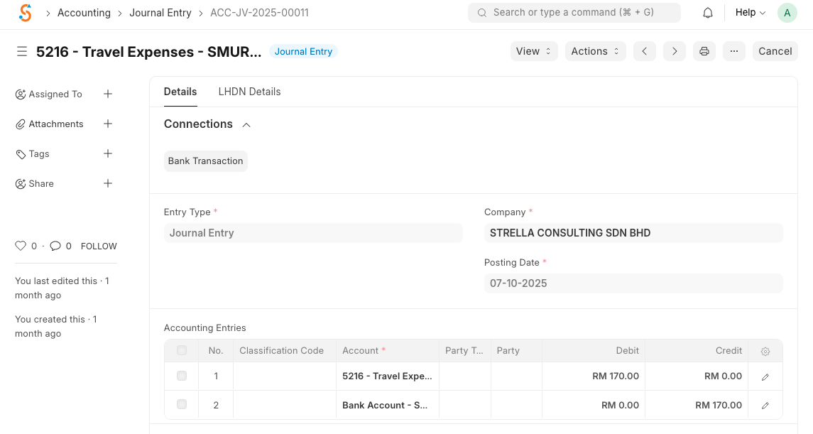 - Go to Home → Accounting → General Ledger → Journal Entry and click New.